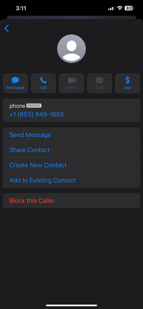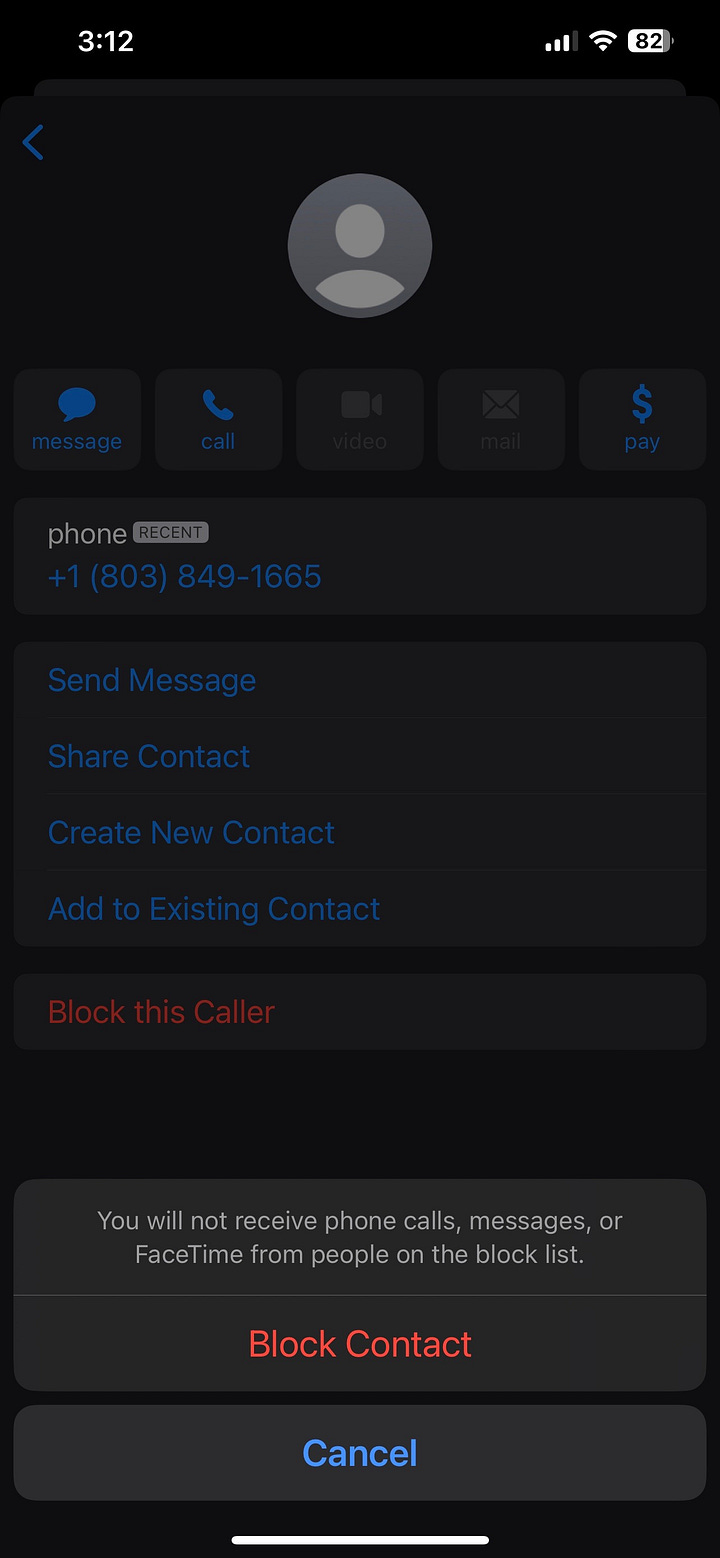 4. Scroll up and click on “Block this Caller.” This is displayed in red because, danger!